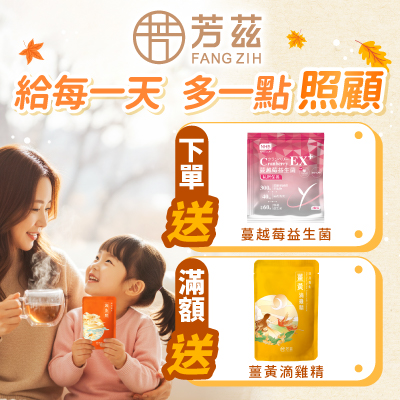 <<給每一天多一點照顧>> 2025/11/18 - 12/9 ✨消費就送✨NHB蔓越莓益生菌體驗組 1包 ✨單筆消費滿$5,888 送✨薑黃滴雞精 1包