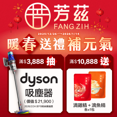 <<暖春送禮補元氣>>2025/12/26 – 2026/01/14 ✨ 單筆滿 $3,888 抽 Dyson吸塵器 (價值約$21,900) ✨ 單筆滿 $5,888 送 胜肽美妍飲1包 (價值$145) ✨ 單筆滿 $10,888 送 滴雞精1包+滴魚精1包