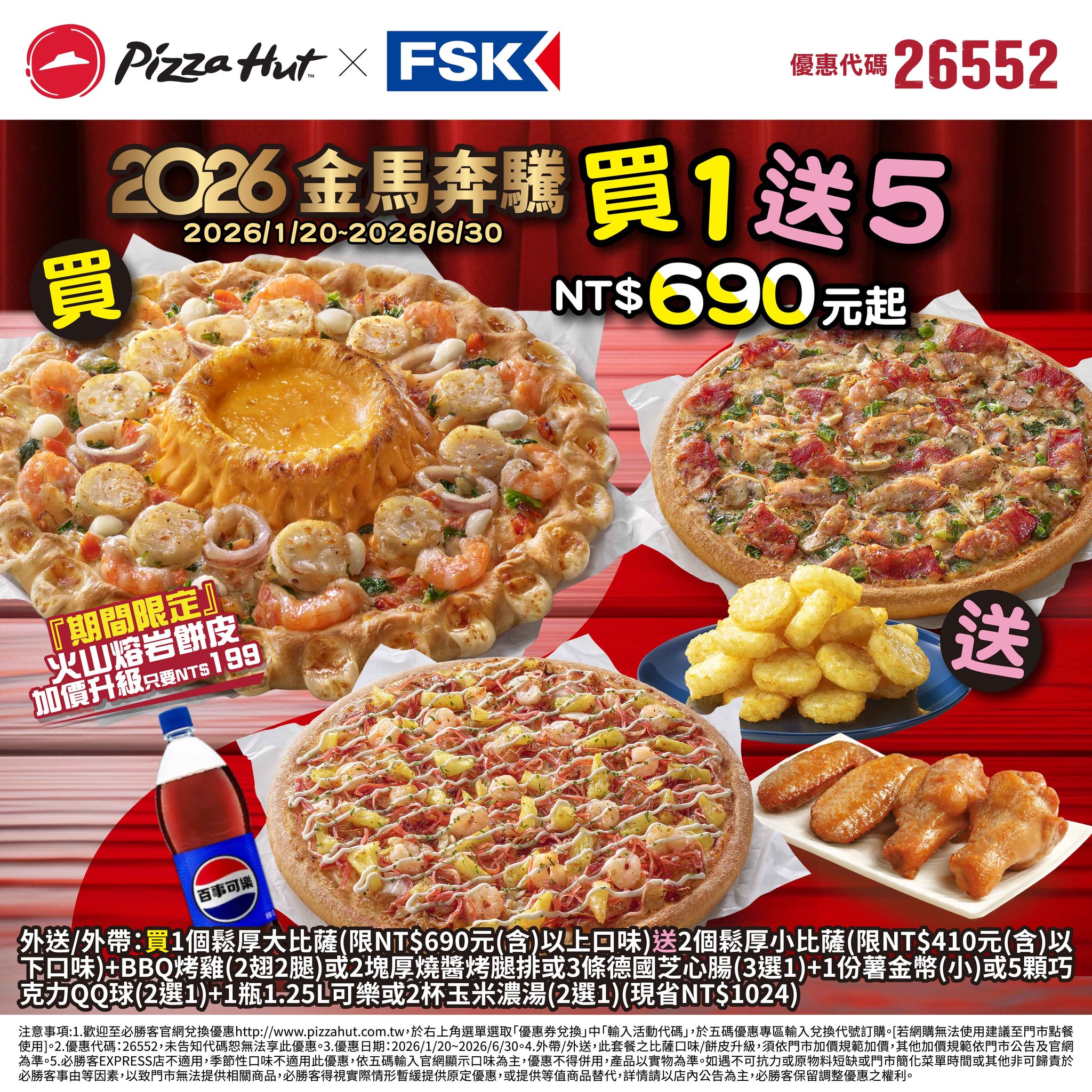 FSK × Pizza Hut 必勝客--金馬奔騰・買 1 送 5,一個披薩,整桌都到齊! 聚餐、追劇、過年直接升級。