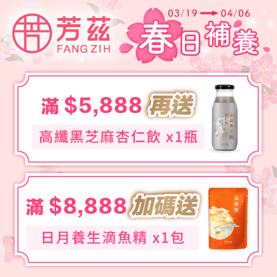 ✨ 下單就送|全效專利膠原蛋白體驗組 1包 🎁 滿 $5,888 送|高纖黑芝麻杏仁飲 1瓶 ❤️ 滿 $8,888 再送|日月養生滴魚精 1包